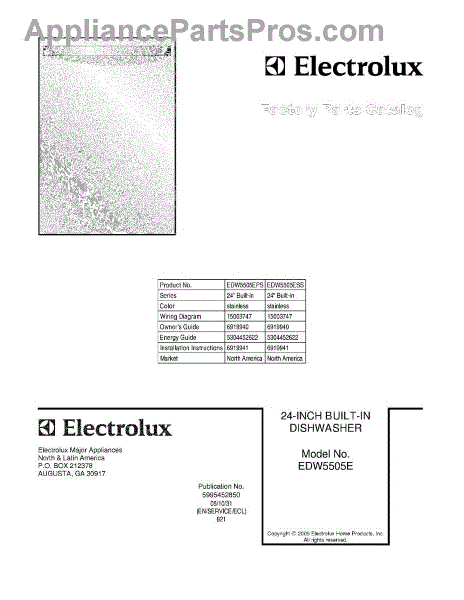 Parts for Electrolux EDW5505ESS: 01 - Cover Parts