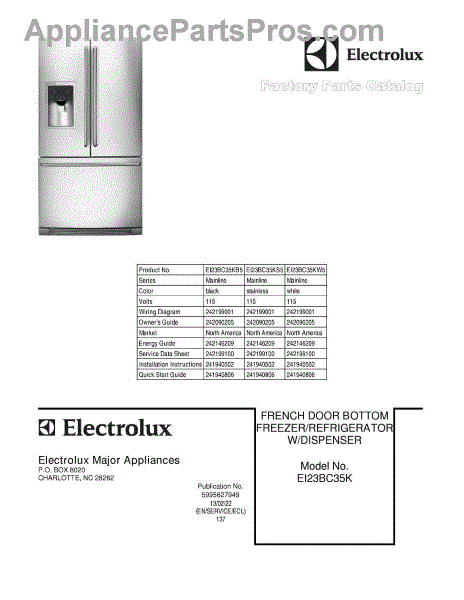 Parts for Electrolux EI23BC35KB5: 01 - Cover Parts