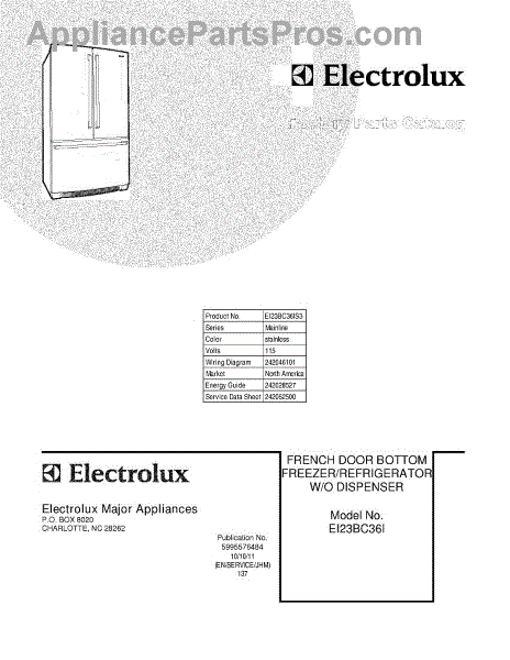 Parts for Electrolux EI23BC36IS3: 01 - Cover Parts