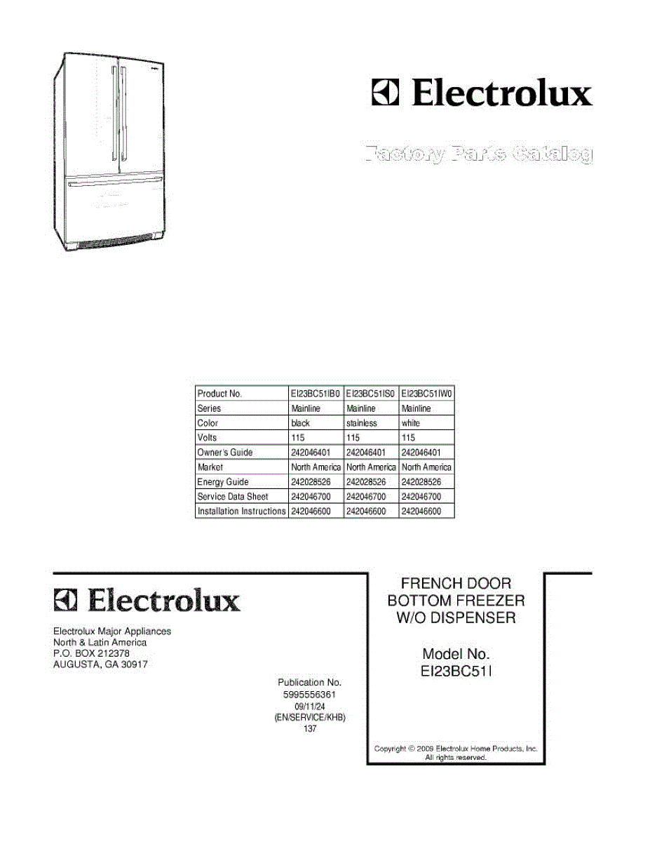 Parts for Electrolux EI23BC51IW0: 01 - Cover Parts