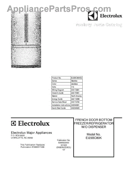 Parts for Electrolux EI23BC80KS2: 01 - Cover Parts