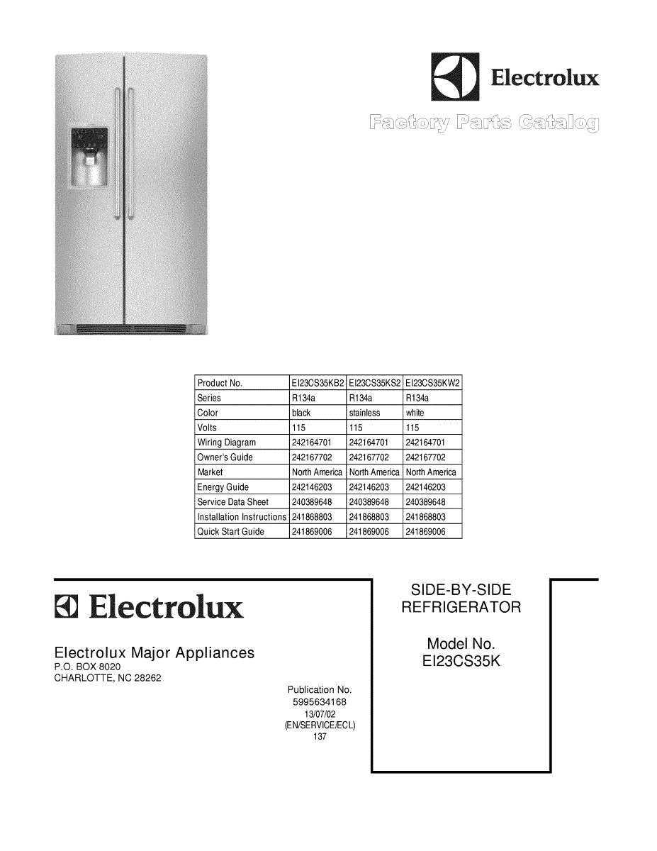 Electrolux Refrigerator Parts