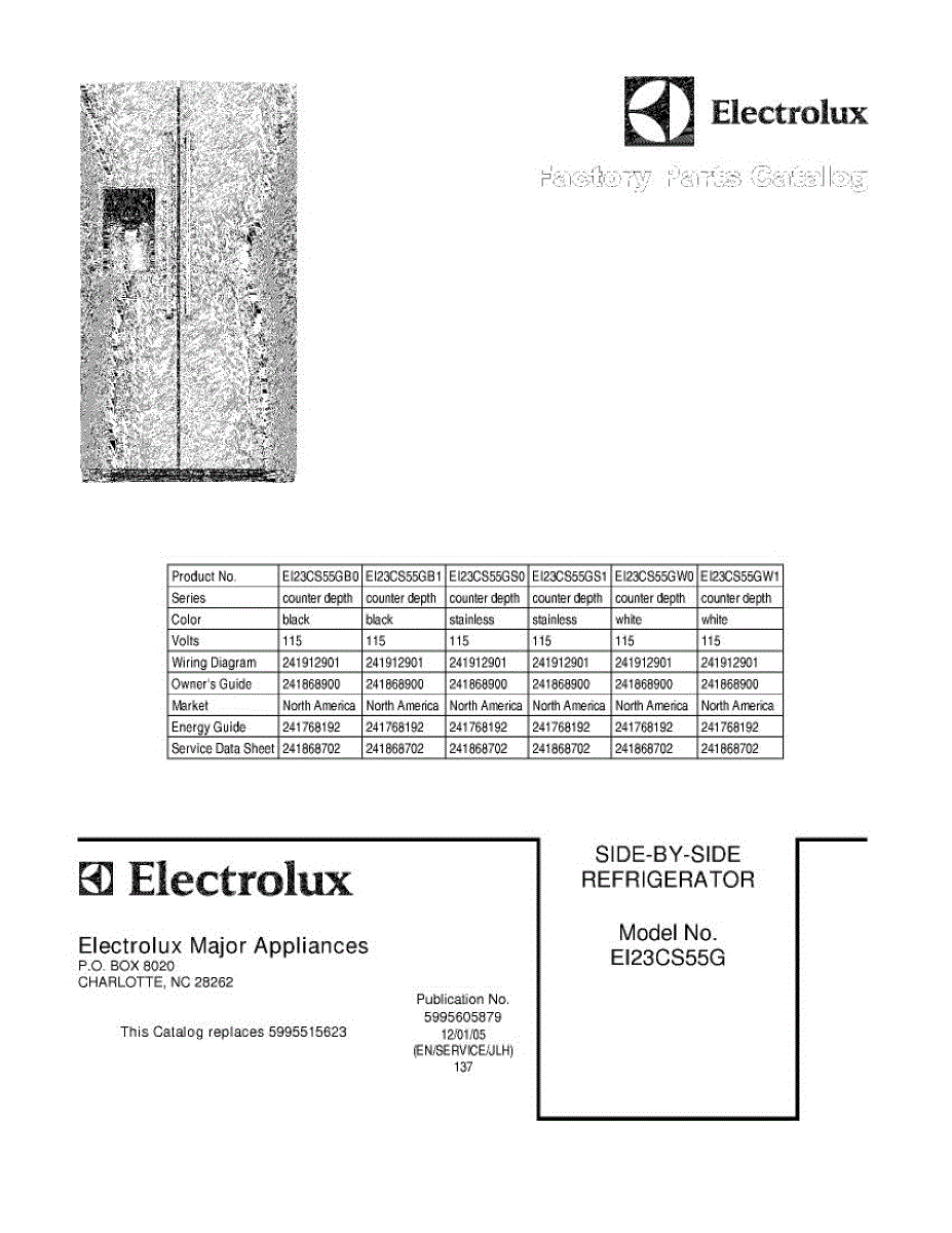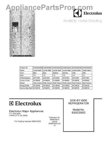 Parts for Electrolux EI23CS55GW1: 01 - Cover Parts