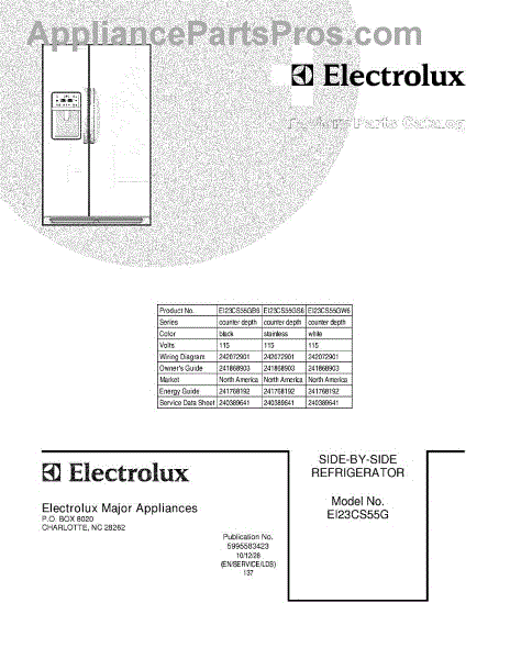 Parts for Electrolux EI23CS55GW6: 01 - Cover Parts