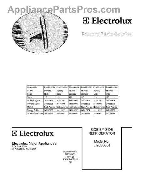 Parts for Electrolux EI26SS35JB0: 01 - Cover Parts