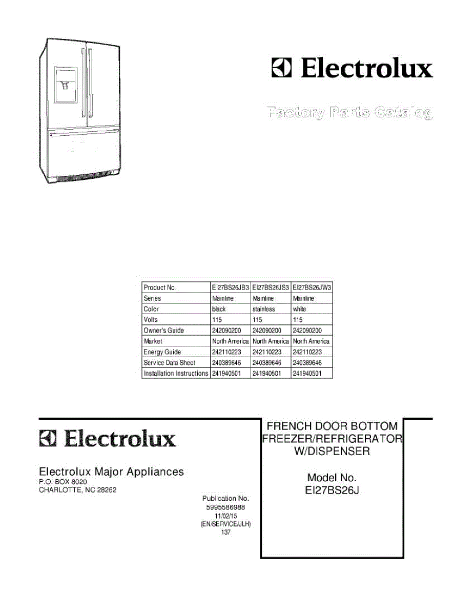 Parts for Electrolux EI27BS26JB3: 01 - Cover Parts