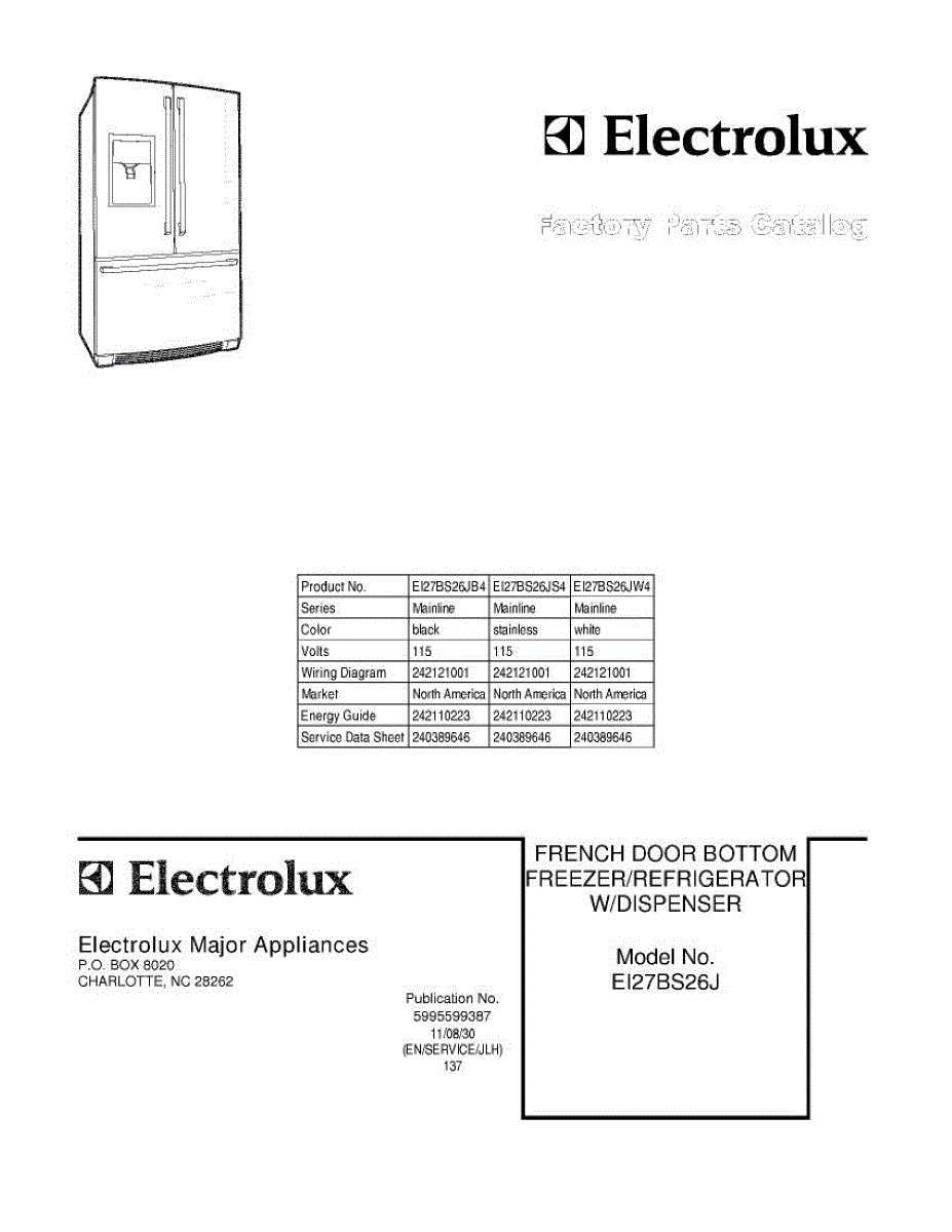 Parts for Electrolux EI27BS26JW4: 01 - Cover Parts