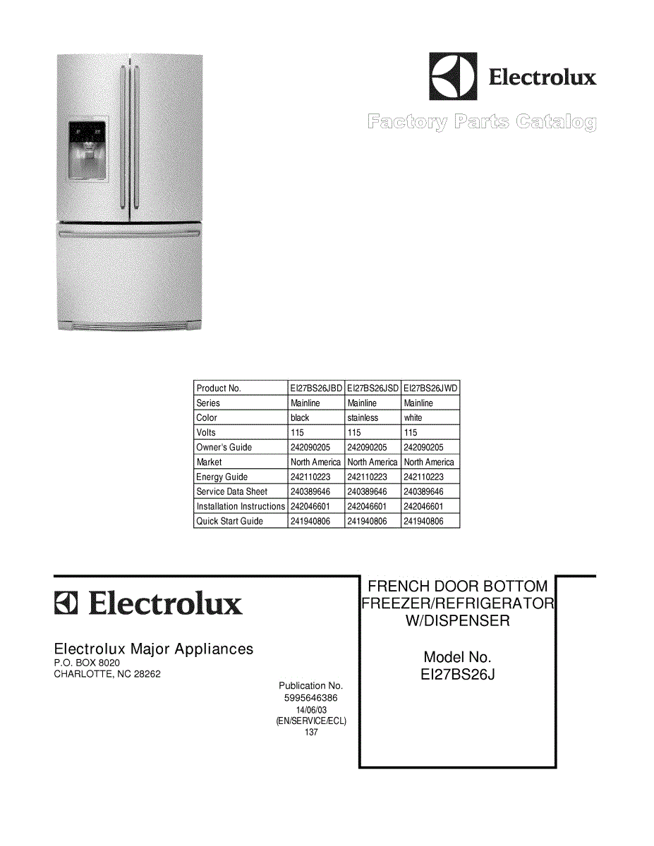 Electrolux Refrigerator Parts