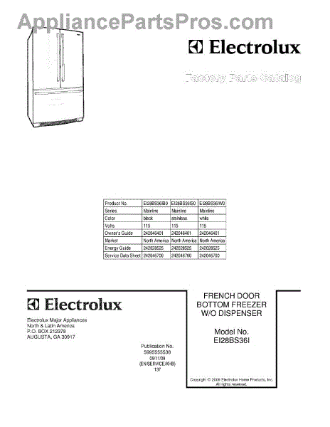 Parts for Electrolux EI28BS36IB0: 01 - Cover Parts