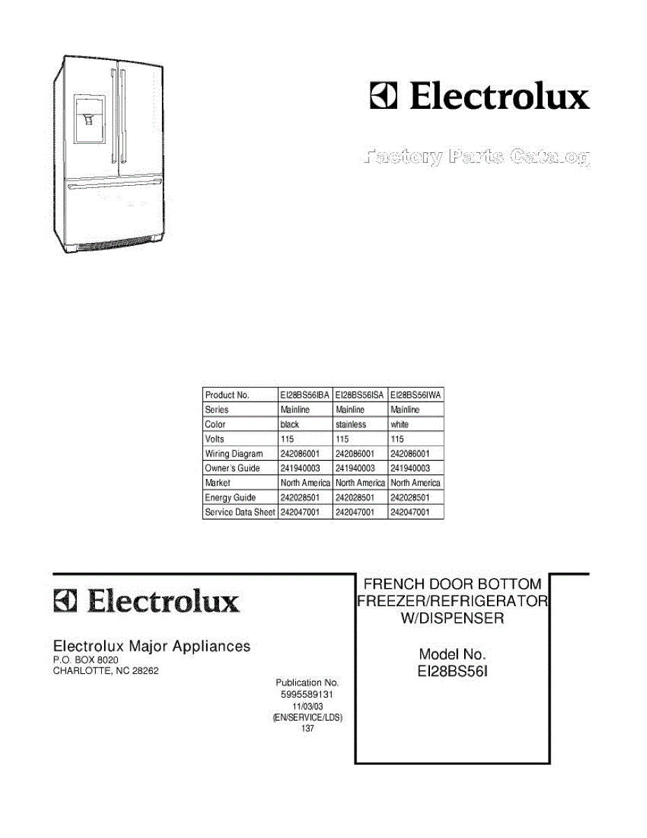 Parts for Electrolux EI28BS56ISA: 01 - Cover Parts