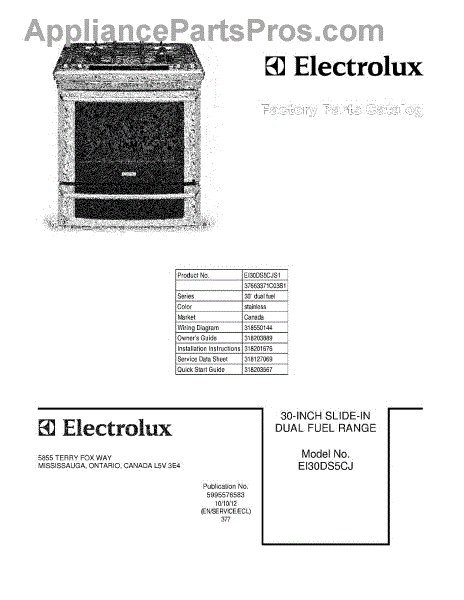 Electrolux Range Parts