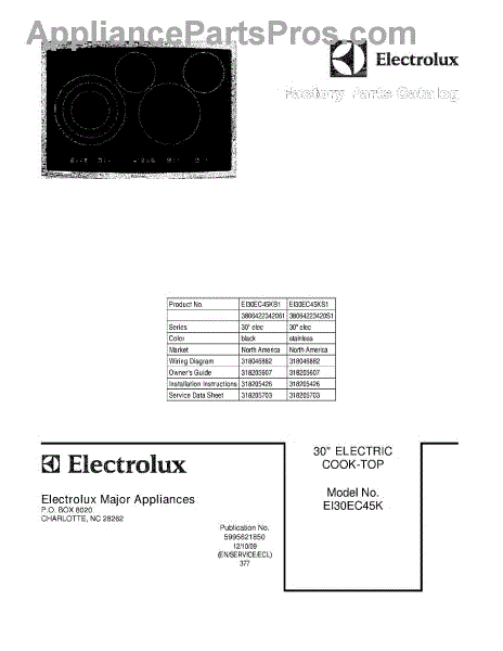 Electrolux Cooktop Parts