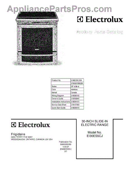Electrolux Range Parts
