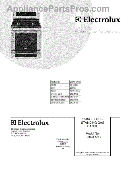 Parts for Electrolux EI30GF55GSA: 01 - Cover Parts