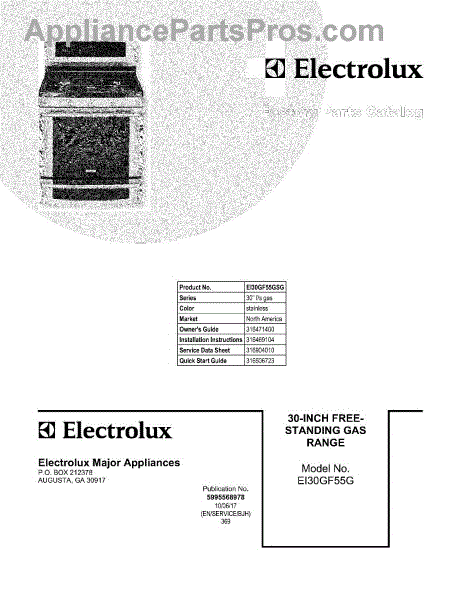 Parts for Electrolux EI30GF55GSG: 01 - Cover Parts