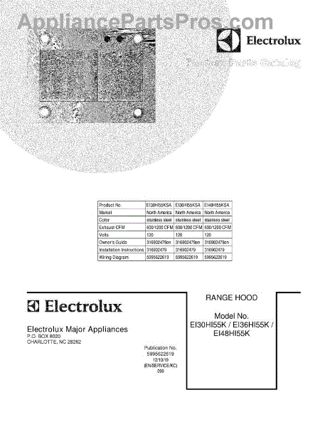Parts for Electrolux EI30HI55KSA: 01 - Cover Parts
