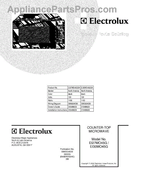 Electrolux Microwave Parts