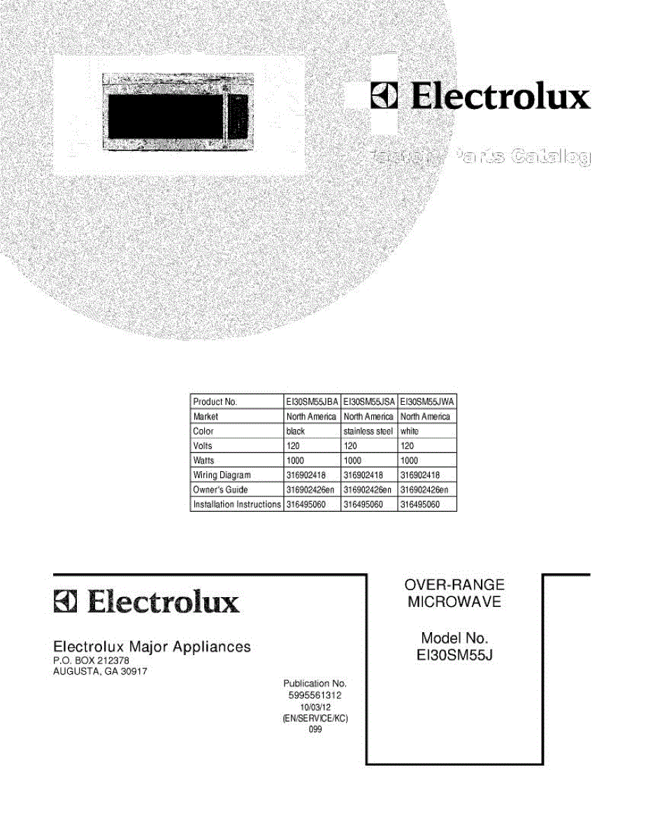 Parts for Electrolux EI30SM55JSA: 01 - Cover Parts