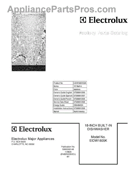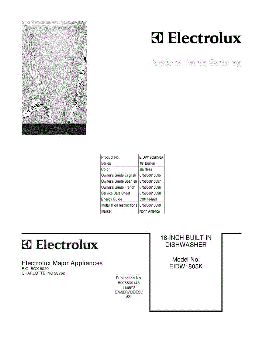 Parts for Electrolux EIDW1805KS0A: 01 - Cover Parts