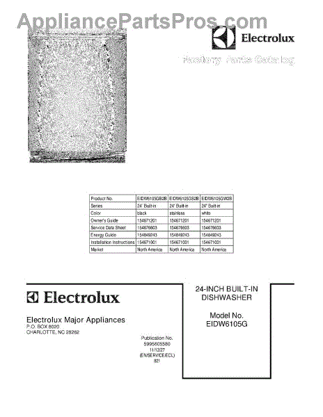 Parts for Electrolux EIDW6105GB2B: 01 - Cover Parts
