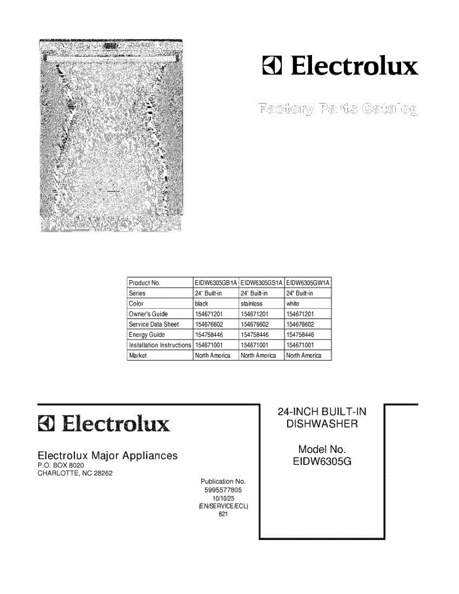 Parts for Electrolux EIDW6305GB1A: 01 - Cover Parts