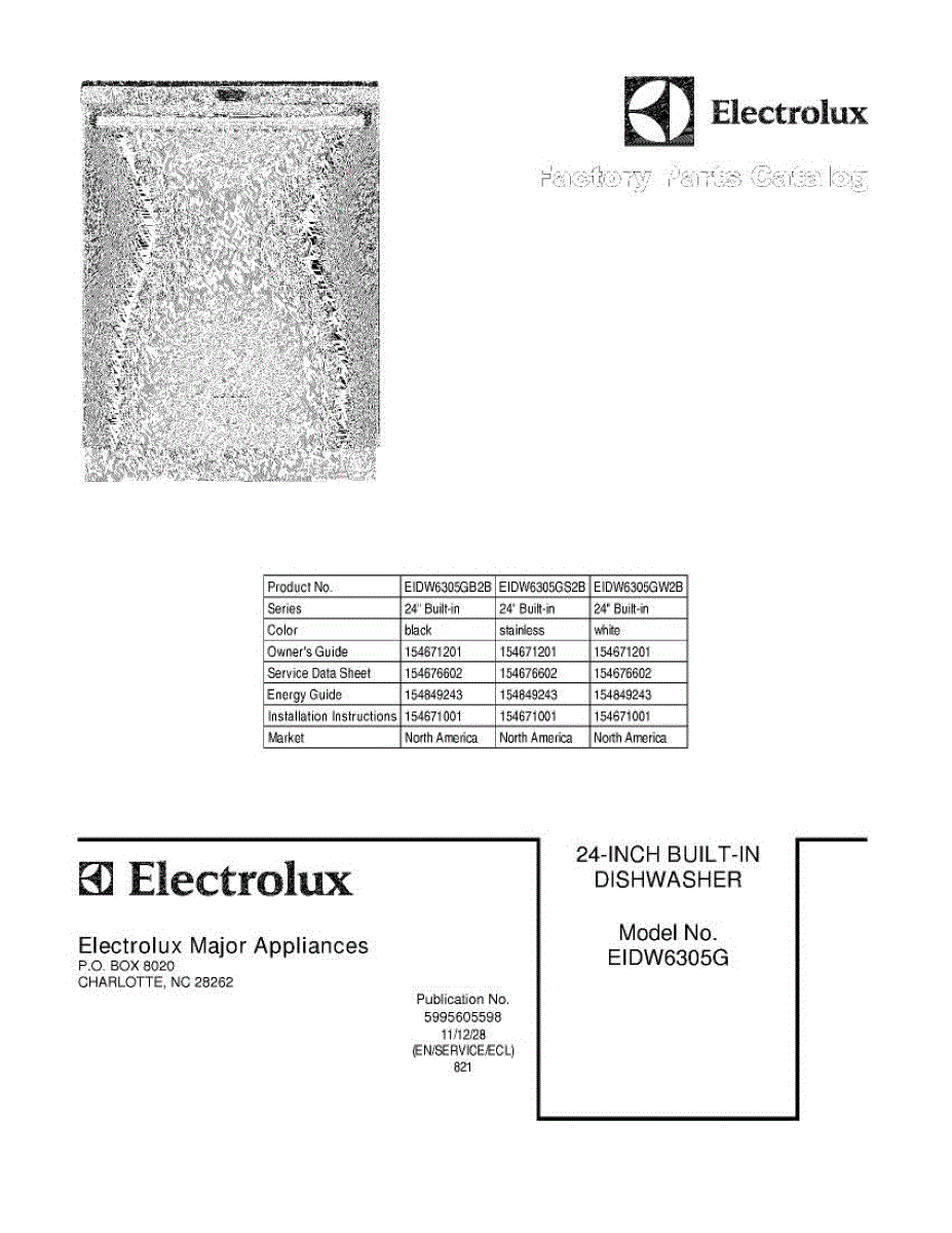 Parts for Electrolux EIDW6305GB2B: 01 - Cover Parts