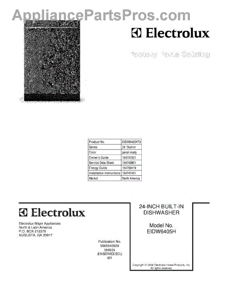 Parts for Electrolux EIDW6405HT0: 01 - Cover Parts