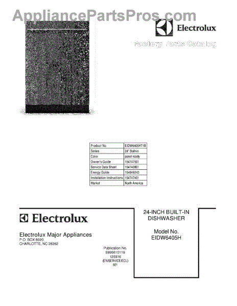 Parts for Electrolux EIDW6405HT1B: 01 - Cover Parts