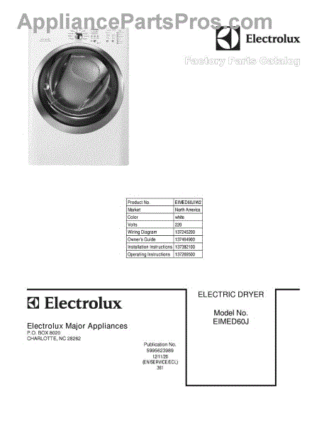 Parts for Electrolux EIMED60JIW2: 01 - Cover Parts