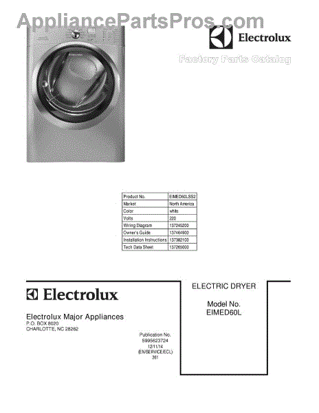 Parts for Electrolux EIMED60LSS2: 01 - Cover Parts