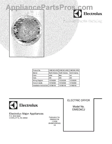 Electrolux Dryer Parts