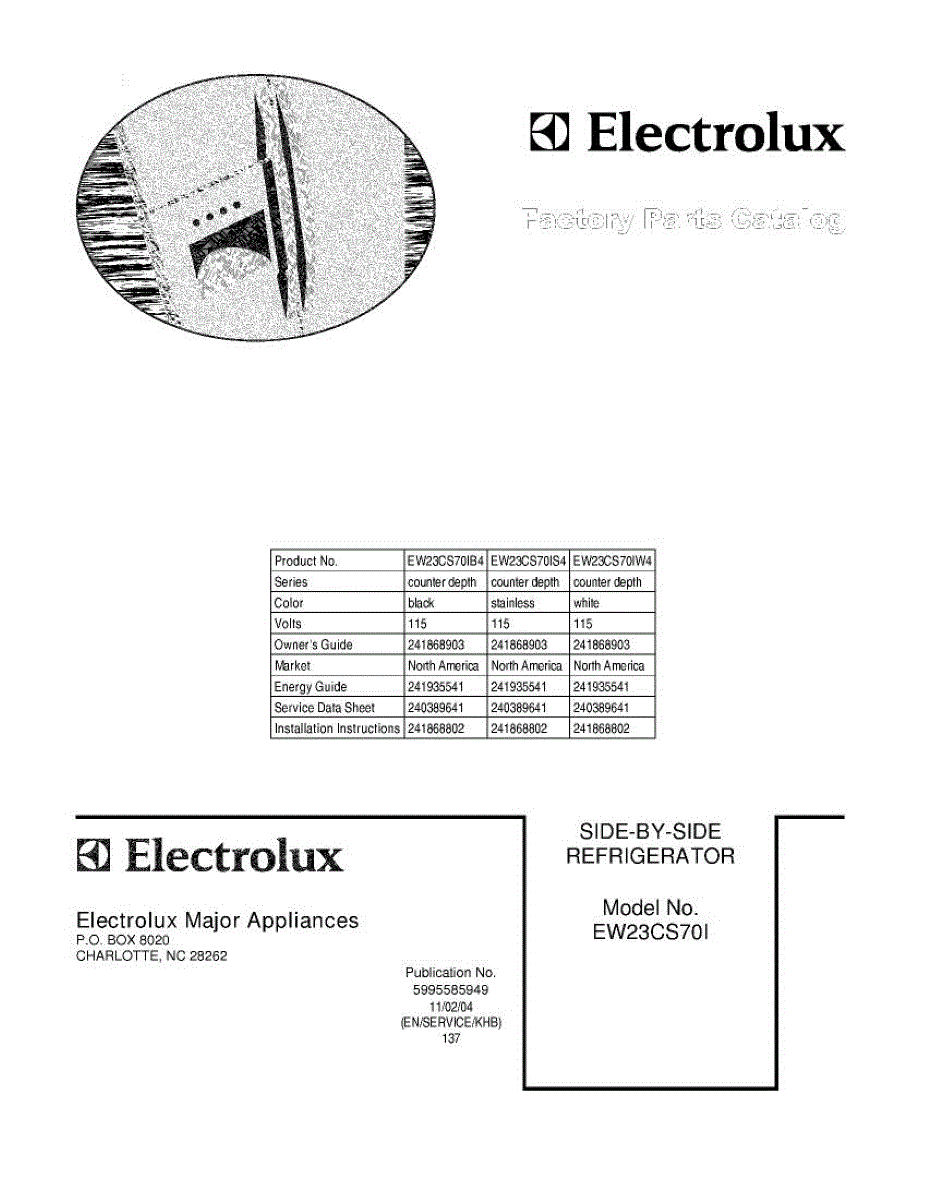 Parts for Electrolux EW23CS70IB4: 01 - Cover Parts