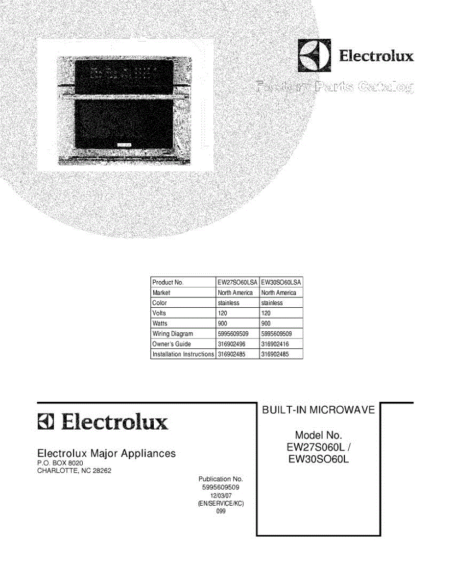 Parts for Electrolux EW27SO60LSA: 01 - Cover Parts