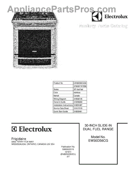 Electrolux Range Parts