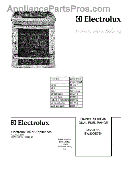 Electrolux Range Parts
