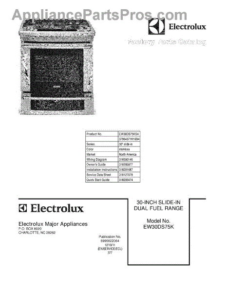 Electrolux Range Parts