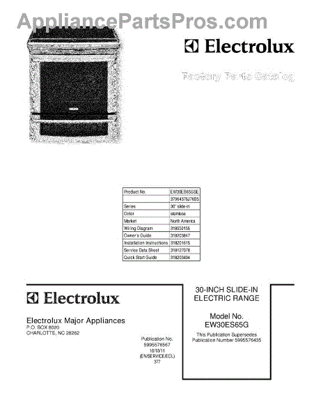 Electrolux Range Parts