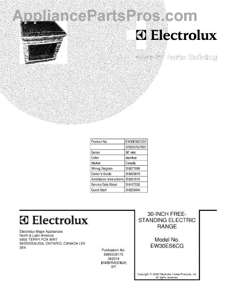 Electrolux Range Parts