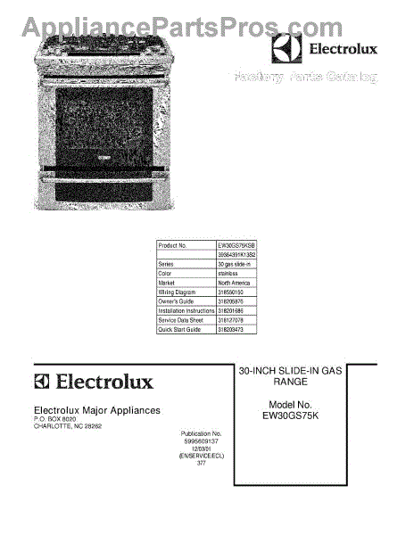 Electrolux Range Parts