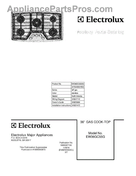 Electrolux Cooktop Parts