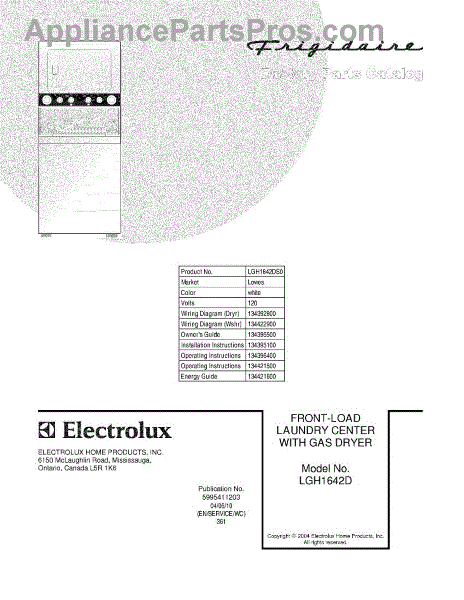Parts for Electrolux LGH1642DS0: 01 - Cover Parts