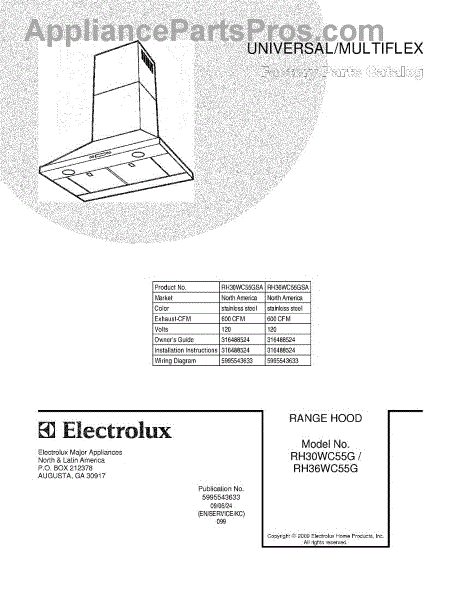 Parts for Electrolux RH30WC55GSA: 01 - Cover Parts