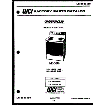 Parts for Frigidaire 31-2758-00-01: 01 - Cover Parts
