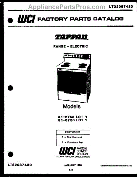 Parts for Frigidaire 31-2758-23-01: 01 - Cover Parts