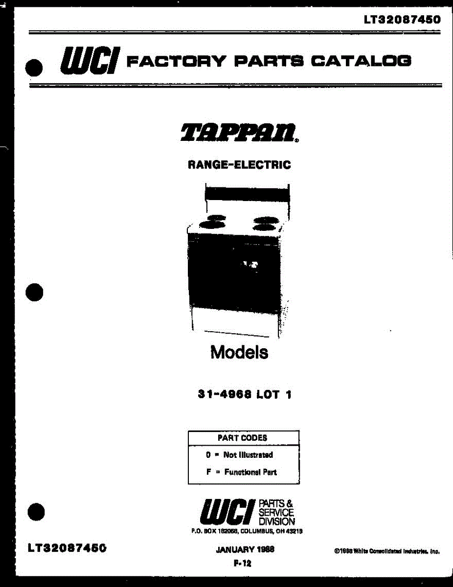 Parts for Frigidaire 31-4968-00-01: 01 - Cover Parts