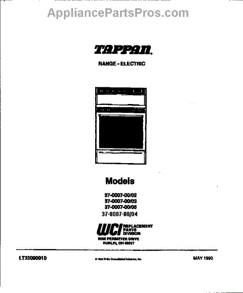 Parts for Frigidaire 37-0007-00-04: 01 - Cover Parts