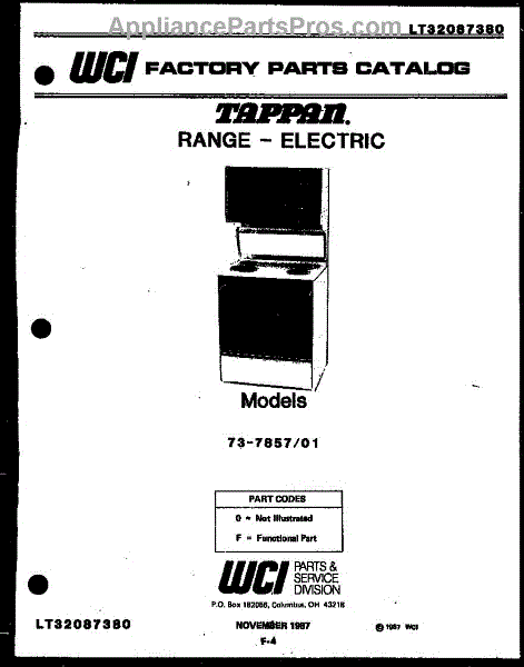 Parts for Frigidaire 73-7857-00-01: 01 - Cover Parts