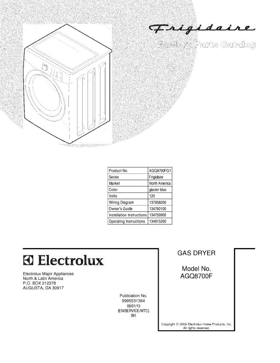 Parts for Frigidaire AGQ8700FG1: 01 - Cover Parts