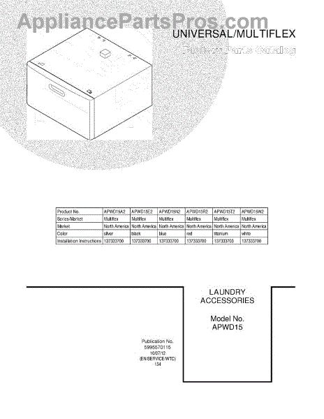 Parts for Frigidaire APWD15A2: 01 - Cover Parts