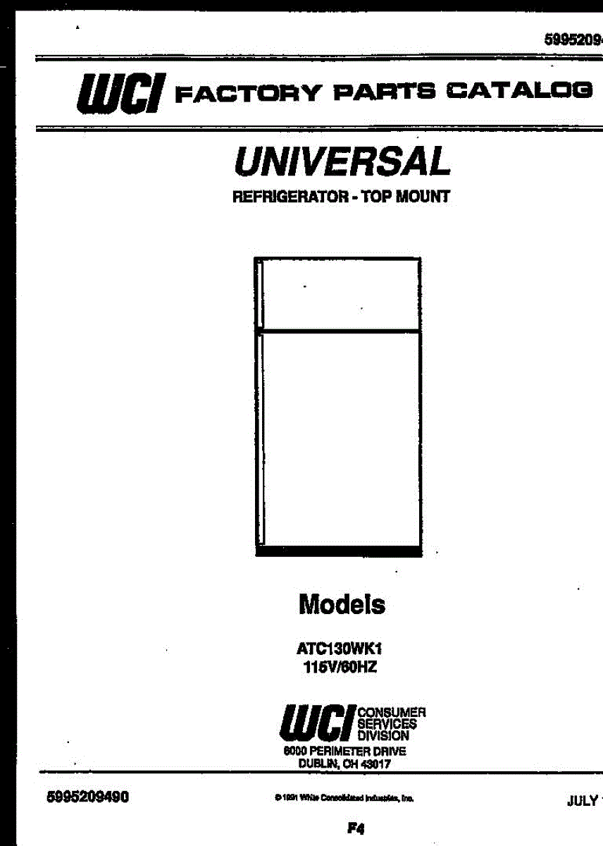 Parts for Frigidaire ATC130LK1: 01 - Cover Parts
